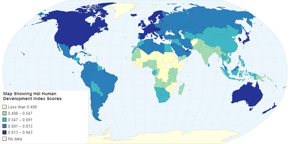 Althought incorrect in current terms, I can see that the HDI roughly follow the Brandt Line with exceptions of Australasia, Chile and Part of the Middle East.