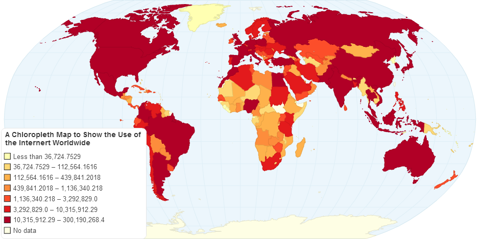 A Chloropleth Map To Show the use of the Internert Worldwide