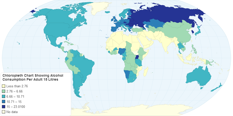 Chloropleth Chart Showing Alcohol Consumption Per Adult 15 Litres