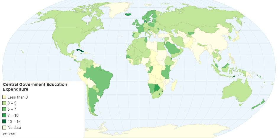 This charts shows central government allocated education expenditure details by country.