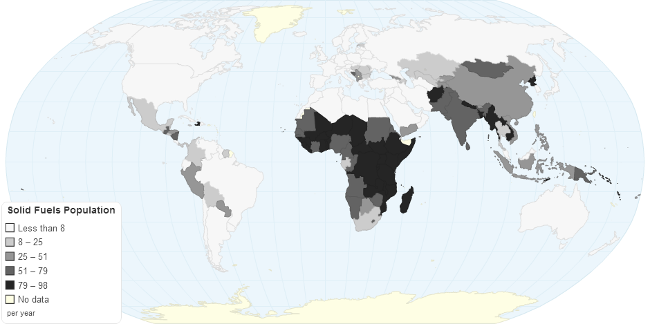 This chart shows population of solid fuels details by country.