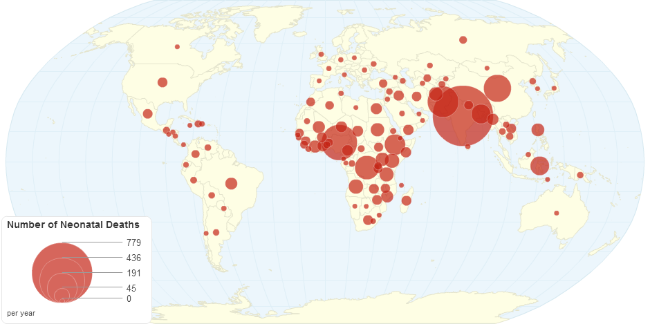 This chart shows number of neonatal deaths details by country.