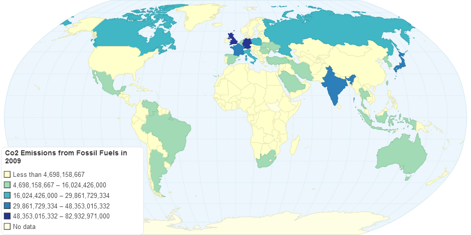 This is a coropleth map explaining the CO2 emmision from fossil fuels in 2009