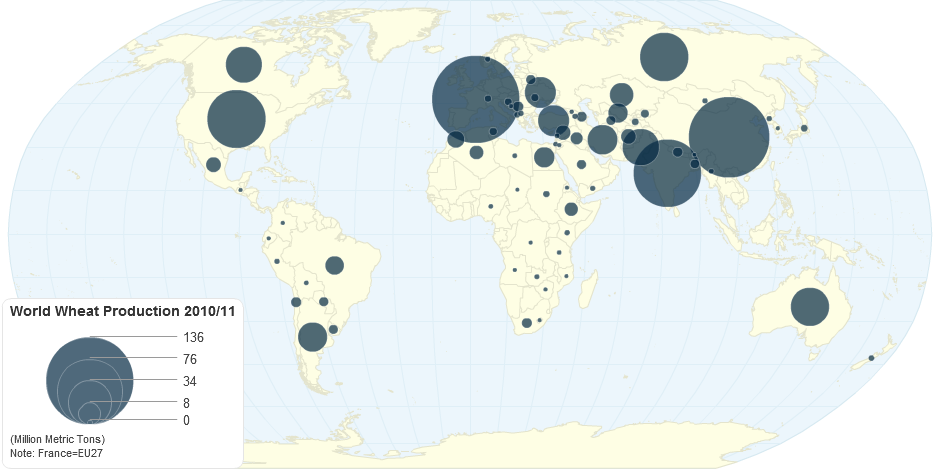 World wheat production 2010/11 (million metric tons)