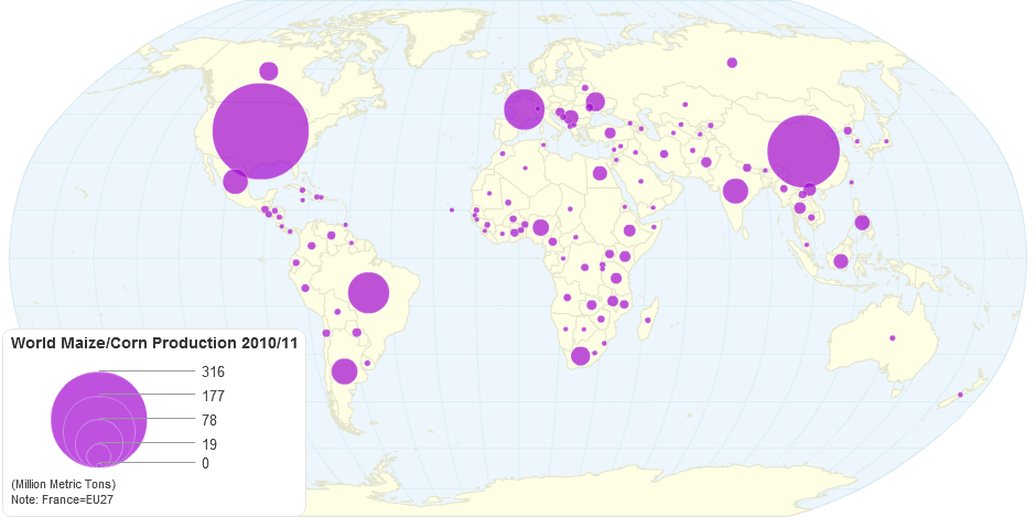 World maize/corn production 2010/11 (marketing year)