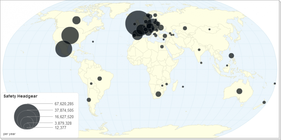 This chart shows safety headgear import and export details by country. Headgear, headwear or headdress is the name given to any element of clothing which is worn on one's head.