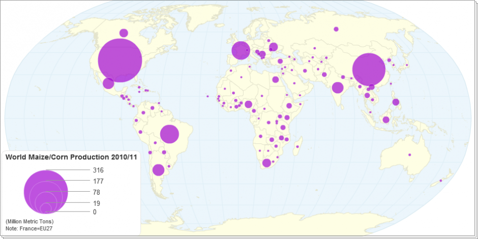World maize/corn production 2010/11 (marketing year)