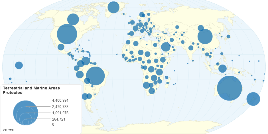 This chart shows terrestrial and marine areas protected by country.