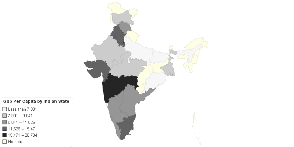 GDP per capital by Indian State in 1997. Data from the Reserve Bank of India