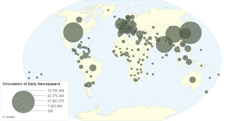 This chart shows the total average circulation of daily newspapers by country in the year 1996.