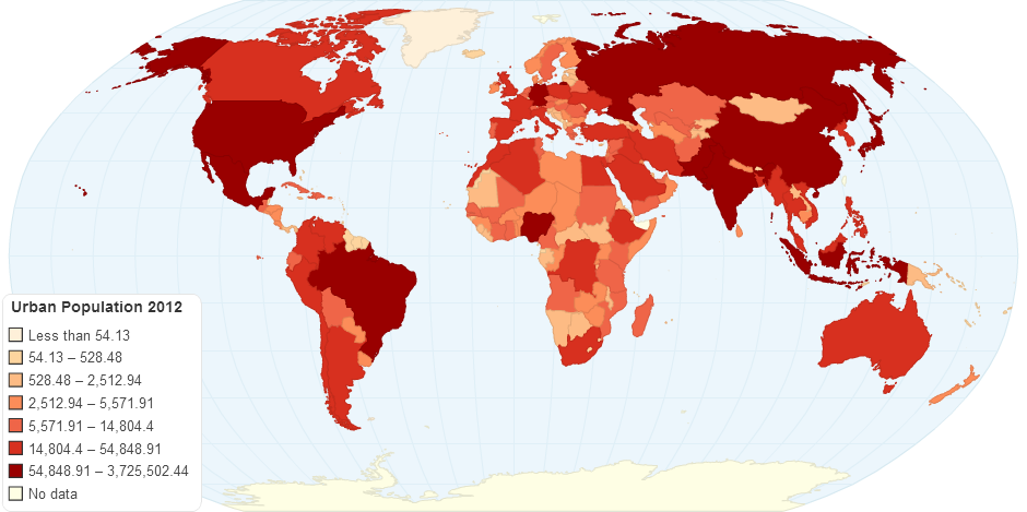 urban population in the world in the year 2012