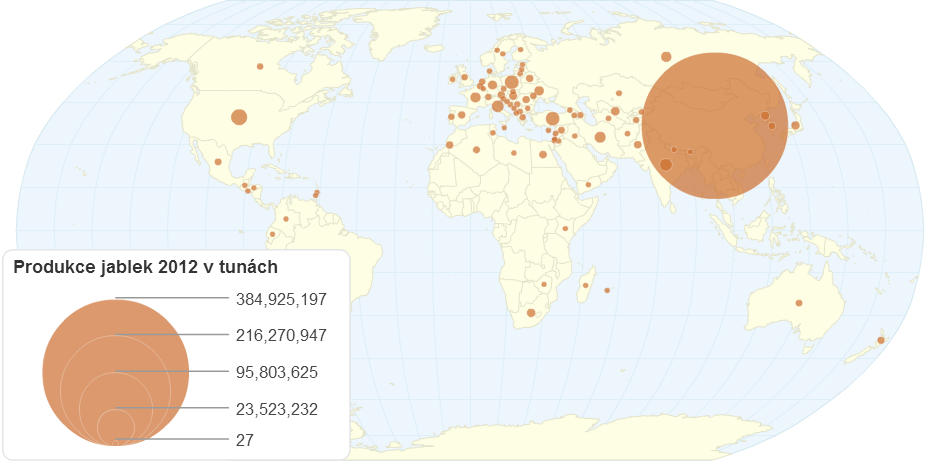 Světová produkce jablek v tunách za rok 2012