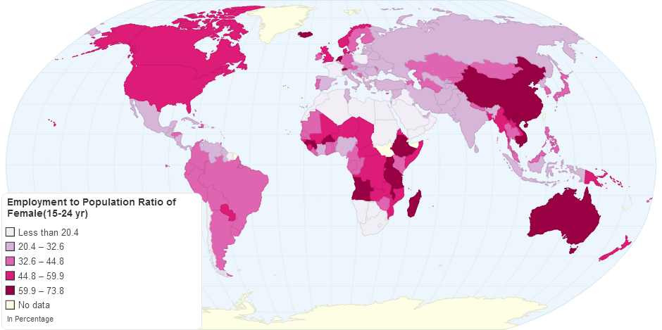 This chart shows Employment - to - Population ratio of Female (15 - 24 yr) by country.