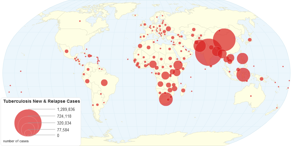 This chart shows Tuberculosis New and Relapse Cases by Country.