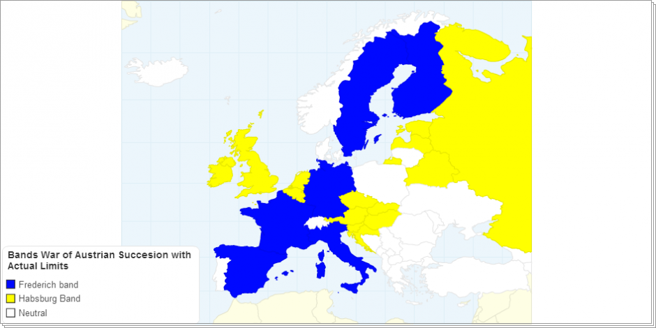 Recration of map about of the War of Austrian Sucesion with actual limits of the all Europe.