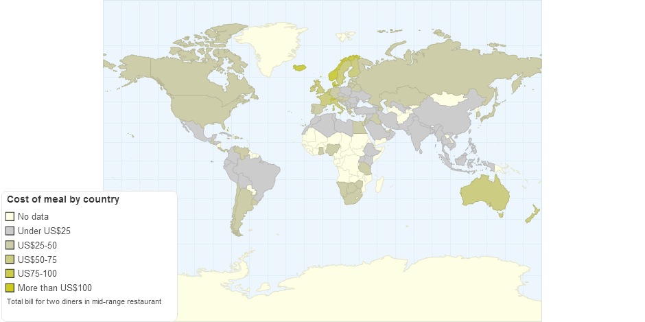 Average Cost of Meal for 2 Mid Range Restaurant by Country