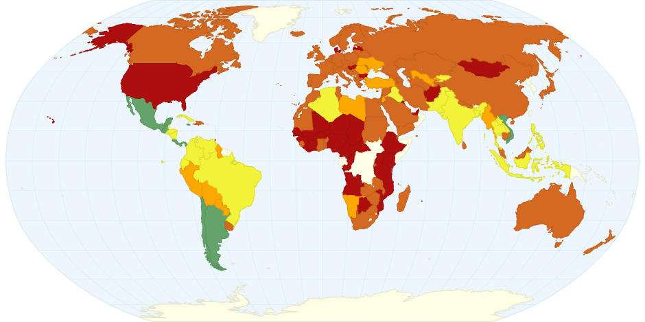 This map shows the overall scores from the second global compilation of the Happy Planet Index (HPI). The HPI is an index of human well-being and environmental impact.