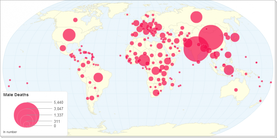 This chart shows male and female deaths by country in the year 2010-2015.