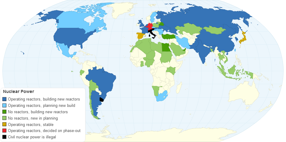 This map shows the Nuclear Power Reactors by each country.