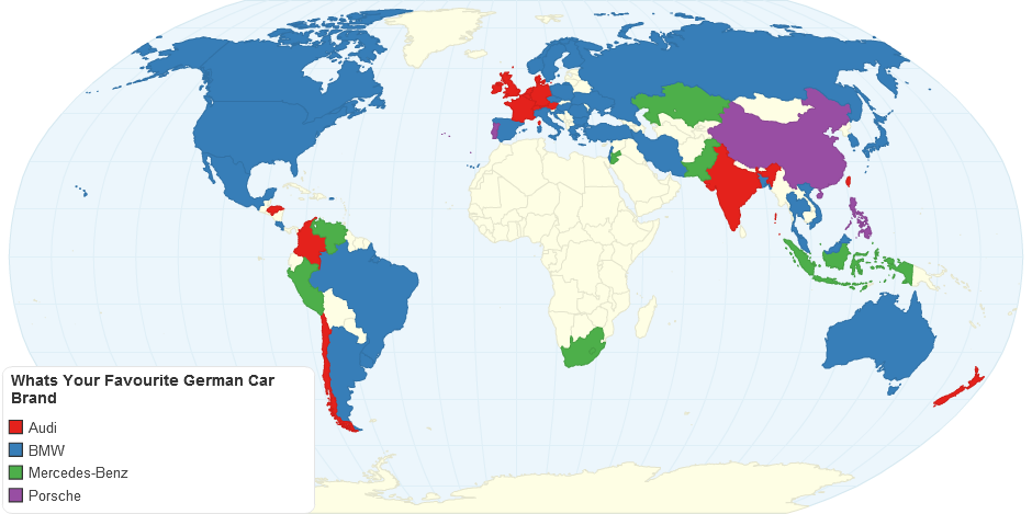 This chart shows the Favourite German Car Brand by each country.