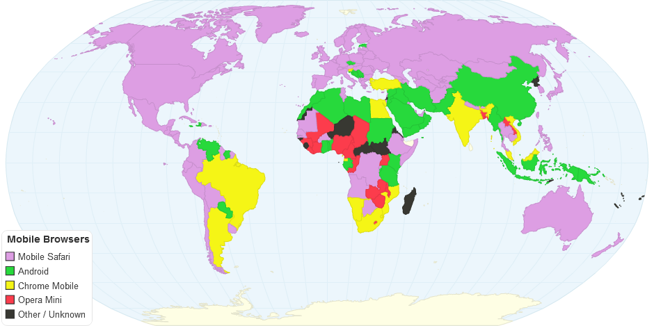 This chart shows The Most Popular Mobile Browsers in each country.