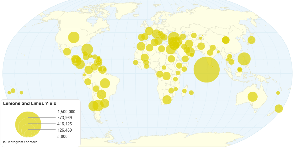 This chart shows the Lemons and Limes Yield by Country.