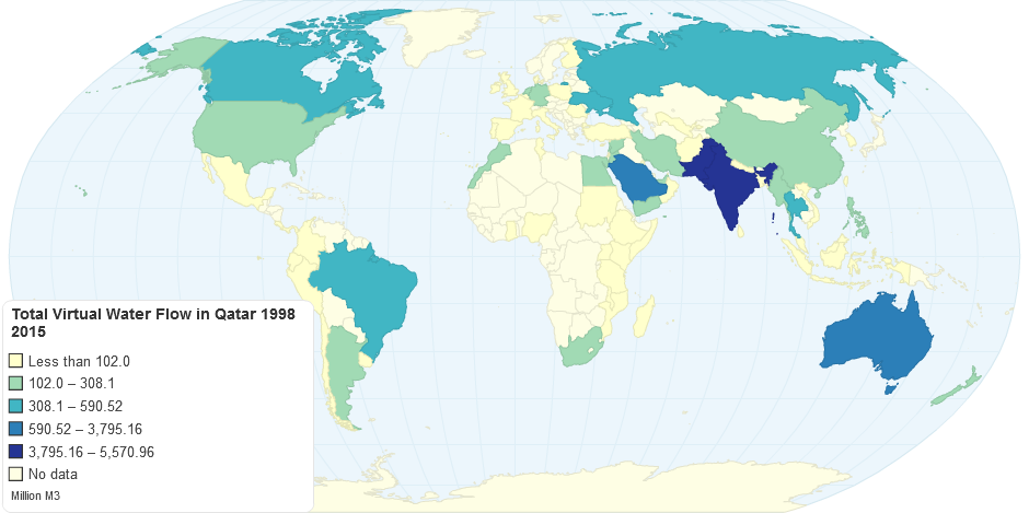 Total Virtual Water Flow in Qatar - 1998 - 2015