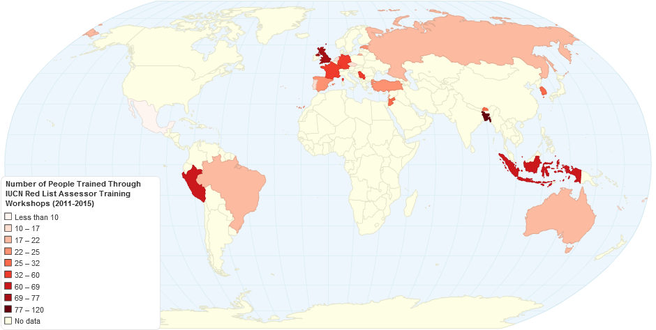 Number of people trained through IUCN Red List Assessor Training Workshops (2011-2015), IUCN, viewed 10th February, 2016.
