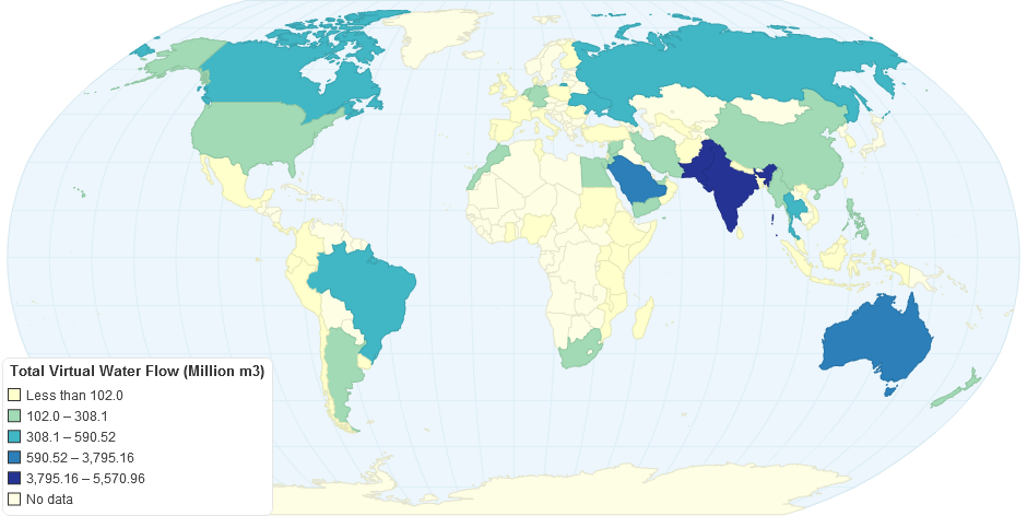 Total Virtual Water Flow in Qatar - 1998 - 2015
