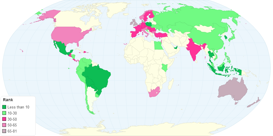This chart shows Global Benchmark Complexity Rank by Country..
