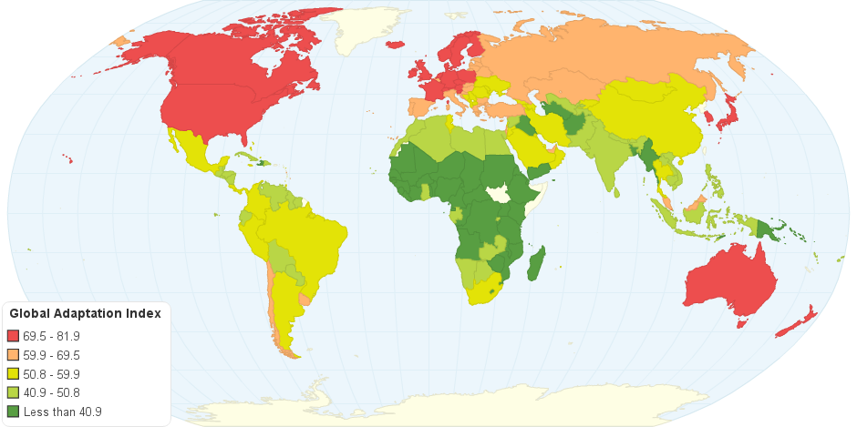 This chart shows the Notre Dame Global Adaptation Index by Country.