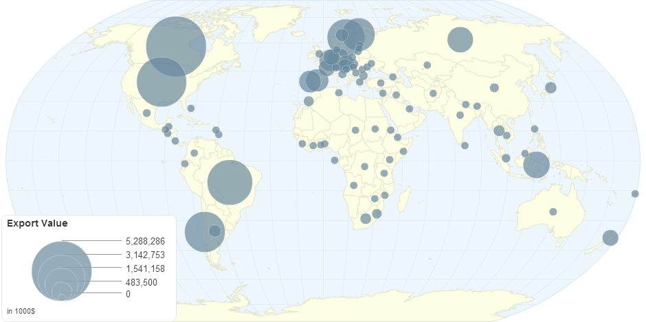 This chart shows Chemical Wood Pulp Export Value by Country.