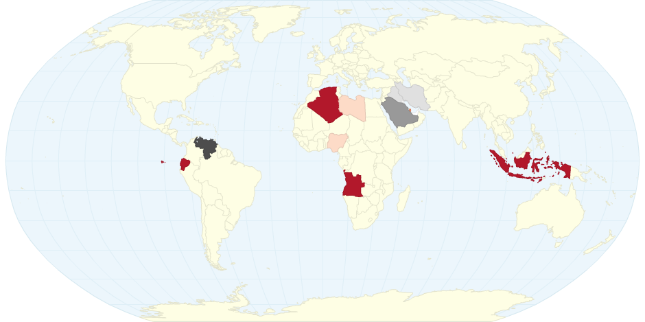 This interactive map shows information of member: membership years, total proven oil reserves, total population, and GDP.