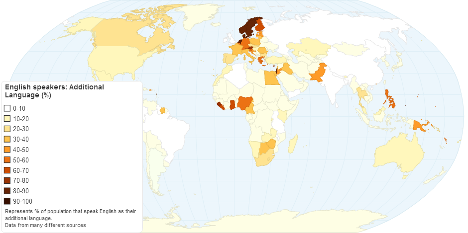 Represents % of population that speak English as their additional language.