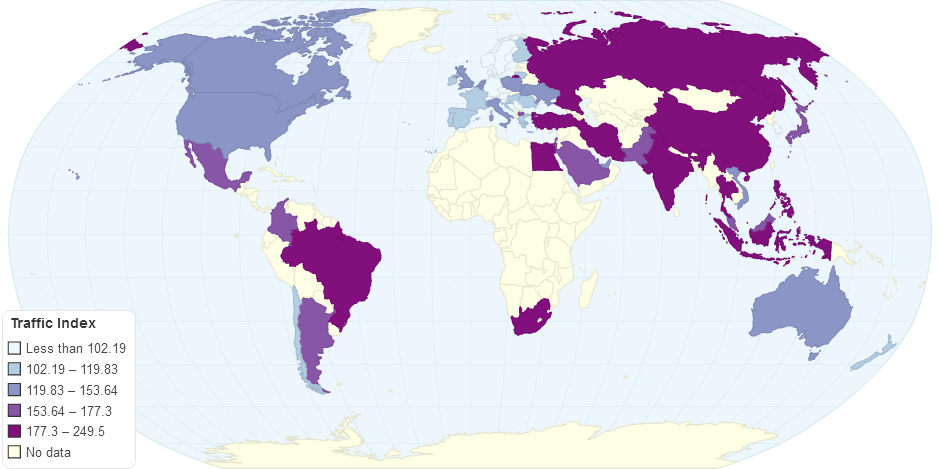 This charts shows Traffic Index for Country 2016.
