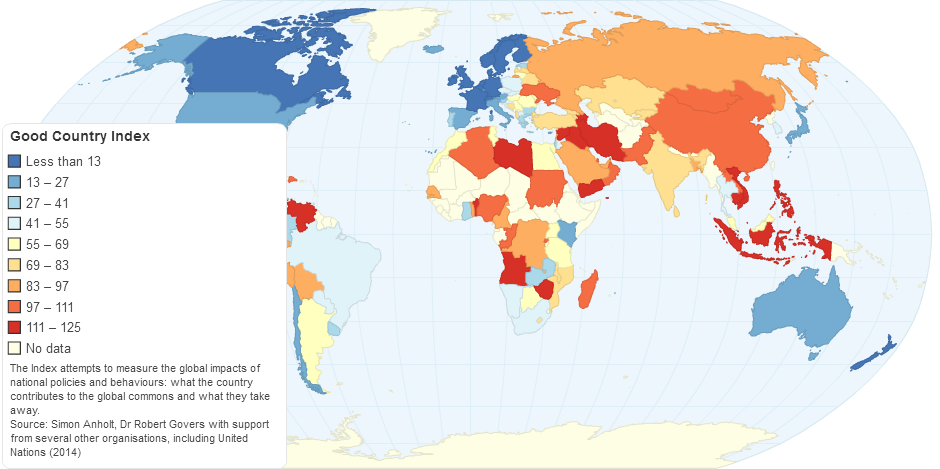 The Index attempts to measure the global impacts of national policies and behaviours: what the country contributes to the global commons and what they take away.