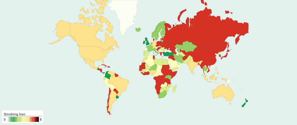 This chart shows Smoking ban or Smoke-free Legislation around the world.