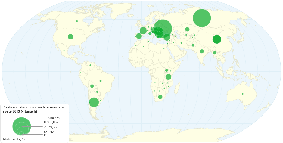 Překvapivě je to Ukrajina, kdo drží prvenství v produkci slunečnicových semínek s více než 11 000 000 tunami. Roku 2013 předehnala i téměř 30x větší Rusko o neskutečných 500 000 tun / za rok. Ve srovnání s celkově třetí Čínou pak měla Ukrajina produkci téměř 5x vyšší.