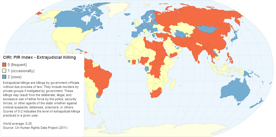 Scores of 0-2 indicates the level of extrajudicial killings practiced in a given year.