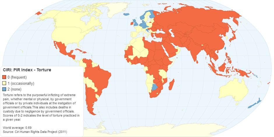 Scores of 0-2 indicates the level of torture practiced in a given year.