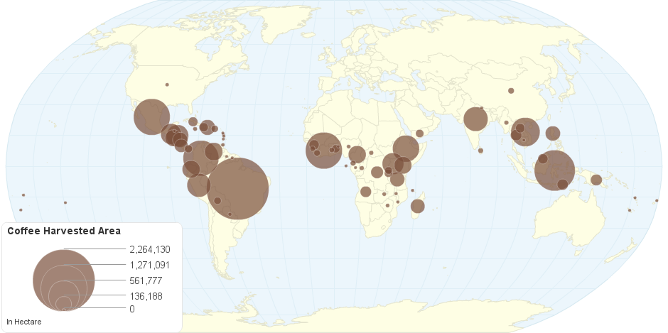 The plant was exported from Africa to countries around the world and coffee plants are now cultivated in over 70 countries primarily in the equatorial regions of the America,Southeast Asia India, and Africa. The two most commonly grown are the highly regarded arabica, and the less sophisticated but stronger and more hardy robusta.
