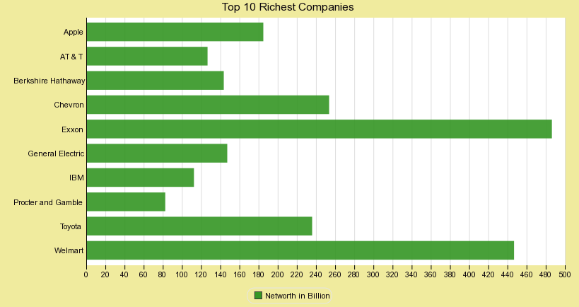 This chart shows the Top 10 Richest Companies in World.