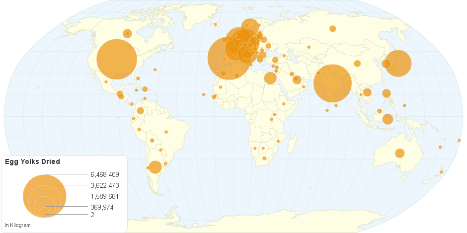 This chart shows Egg yolks dried by Country