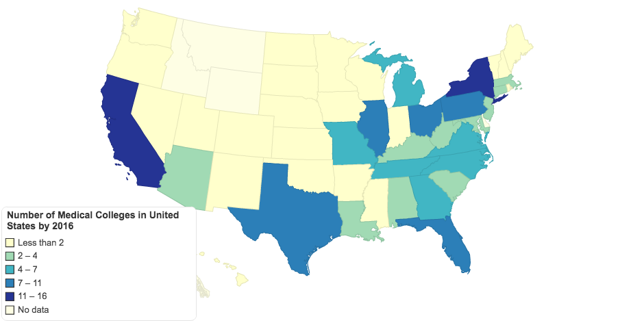 Number of Medical Colleges in United States by 2016