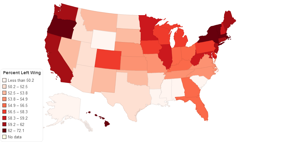 The average percentage who answered the left-wing option to 18 economic isidewith.com polls. Note: all 18 polls were economic issues only. The list would be somewhat different if it included social issues.