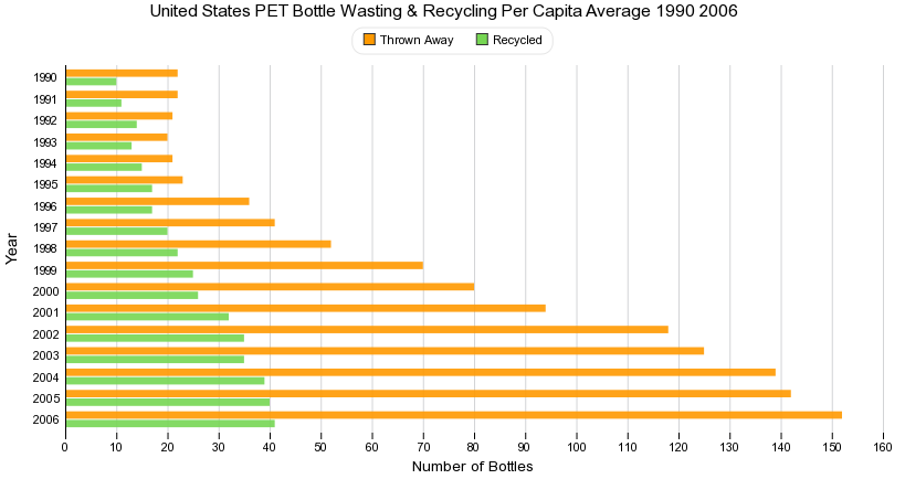 US PET Bottle Wasting & Recycling per capita, 1990-2006, http://www.sustainablebusiness.com/index.cfm/go/progressiveinvestor.issue/id/76, viewed 26th November, 2011.