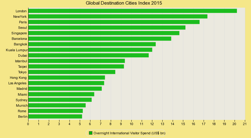 The economic and business impacts of international travel are especially pronounced in cities that are popular destinations of international travelers, and in these destination cities, spending by international visitors contributes significantly to local commerce and business activities.