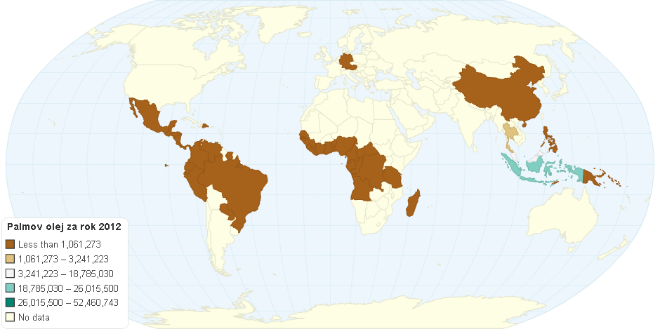 Produkce palmového oleje stále stoupá. Zde jsou nějaké údaje z rolu 2012.