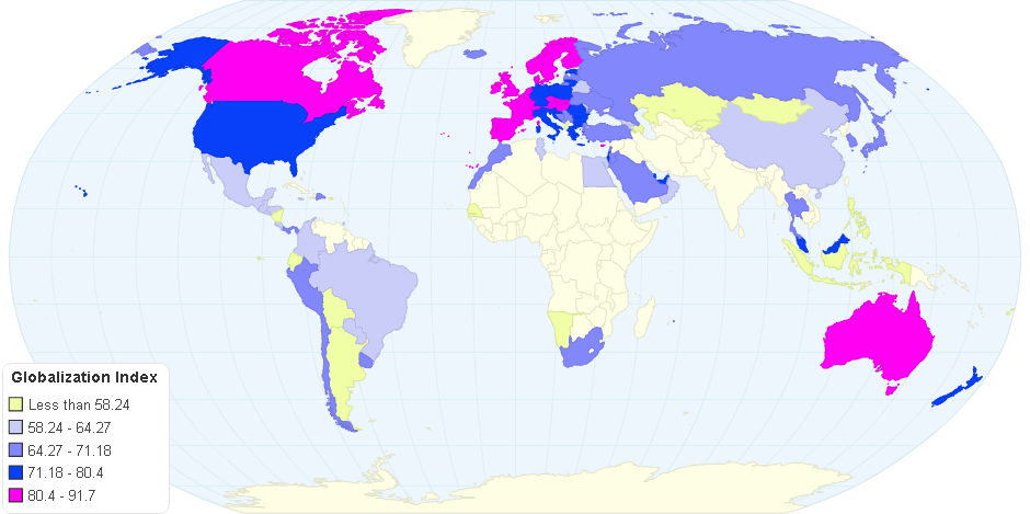 This chart shows Globalization index 2016.