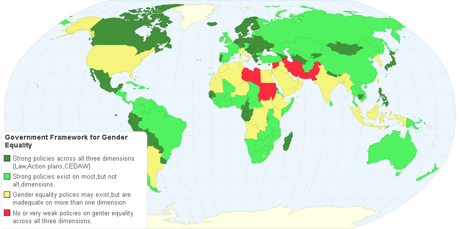 This chart shows Government Framework for Gender Equality.